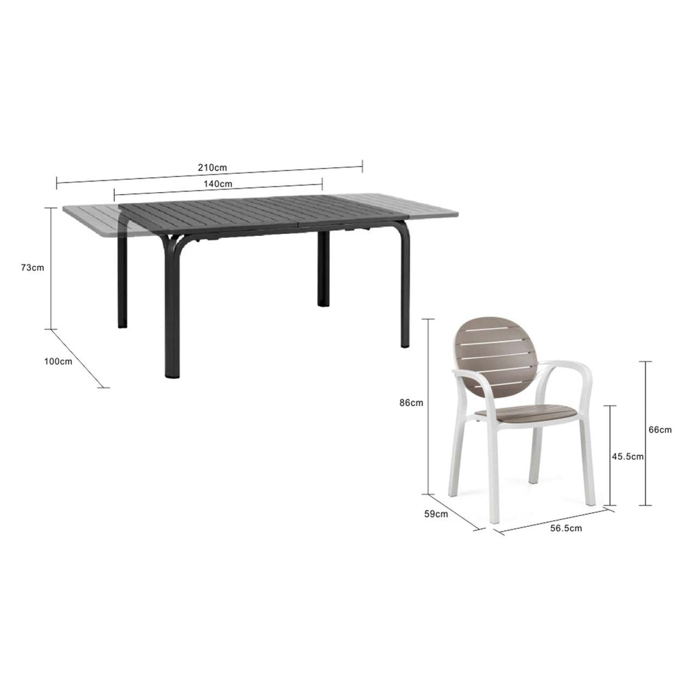 Nardi Alloro 140/210 cm Table Palma Chair Outdoor Dining Setting
